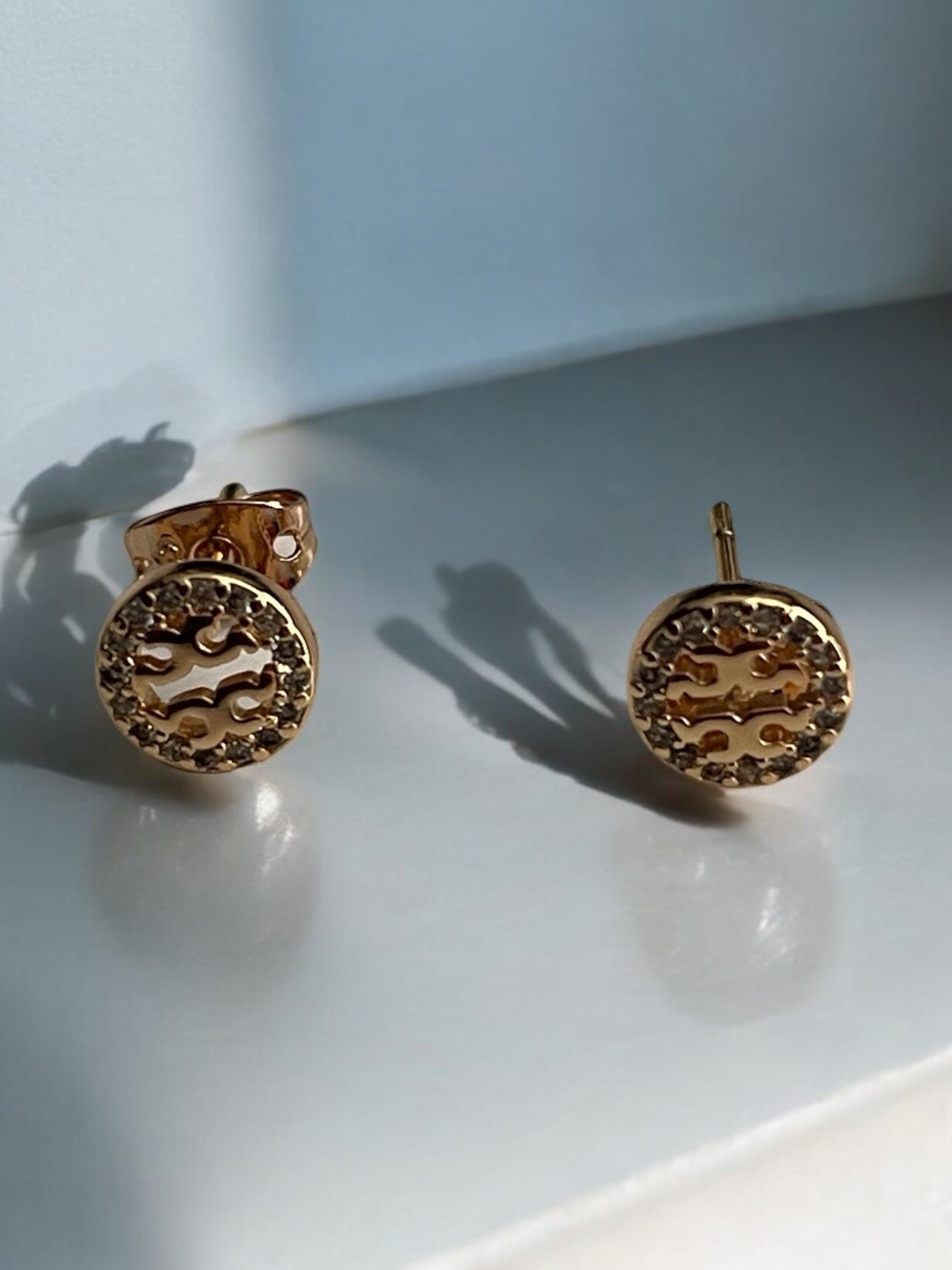 Circle CZ Paved 18k Gold Electroplated Earrings
