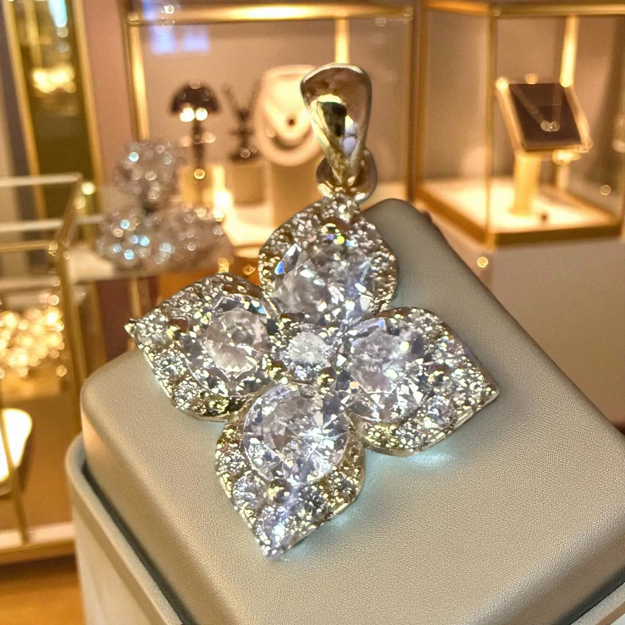 Clover theme with cz stones 14k gold electroplated pendant