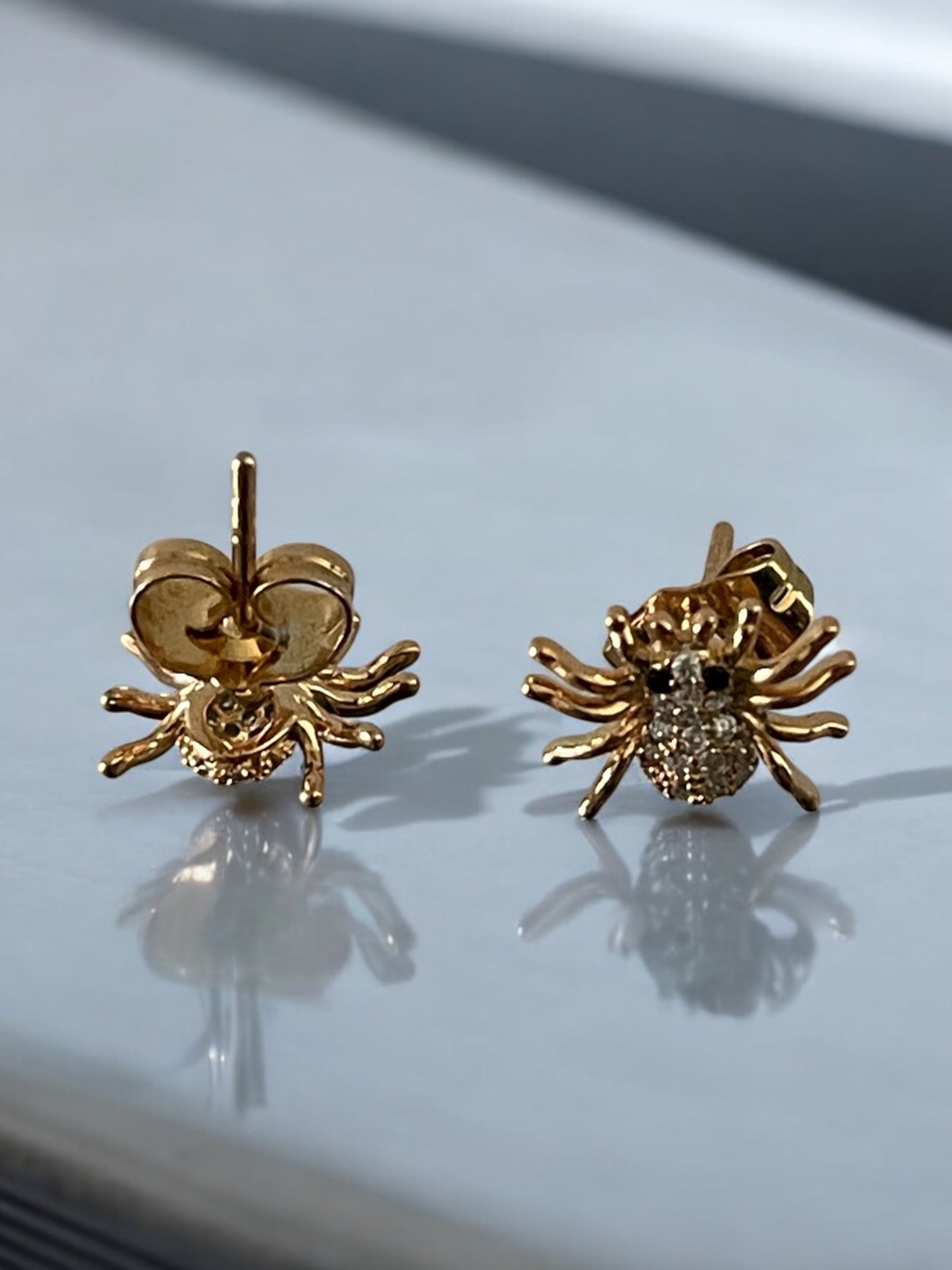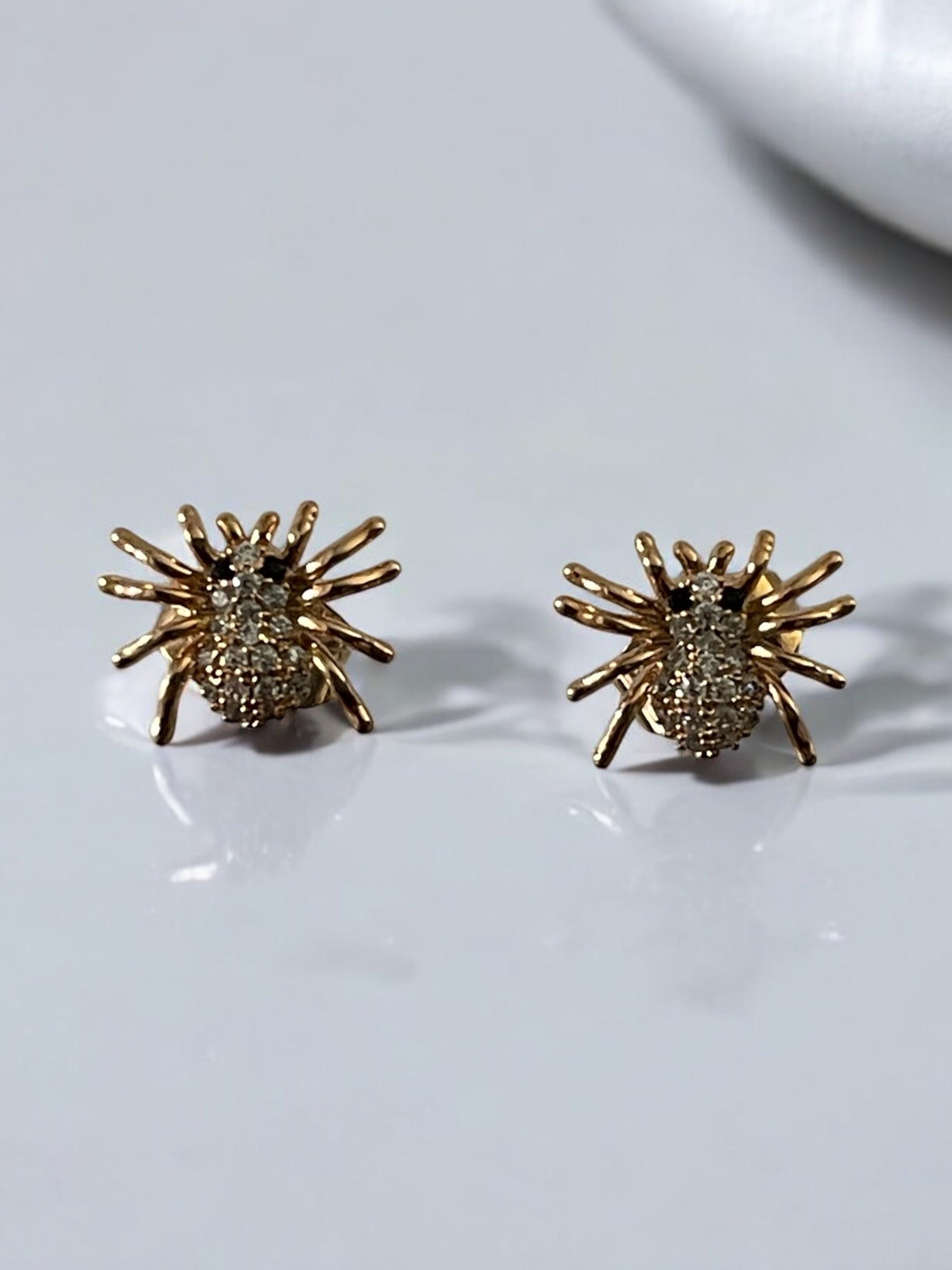 Spider Theme with Cz 18k Gold Electroplated Earrings