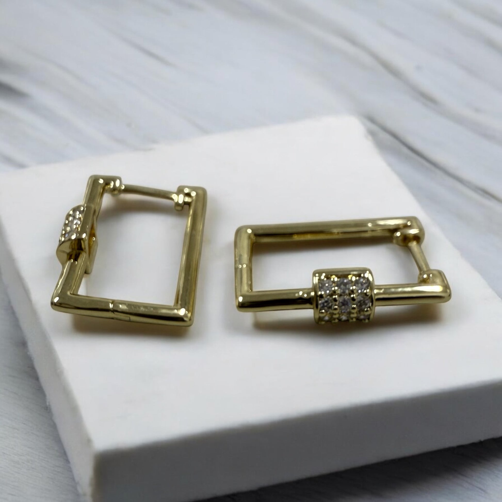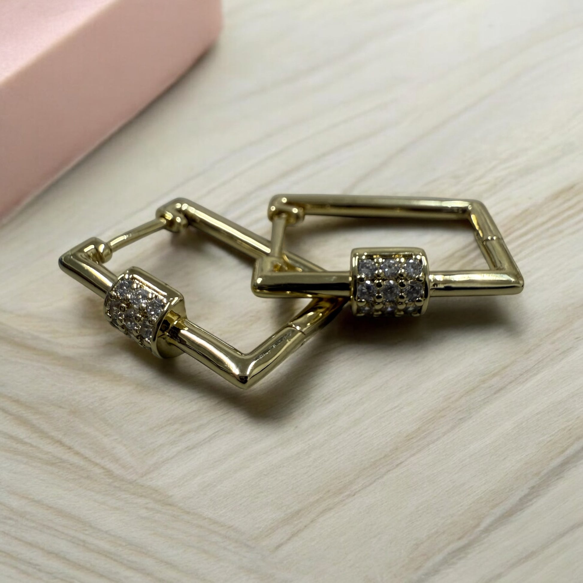 Square 14k gold electroplated with cz stones drop and dangle hoop earrings