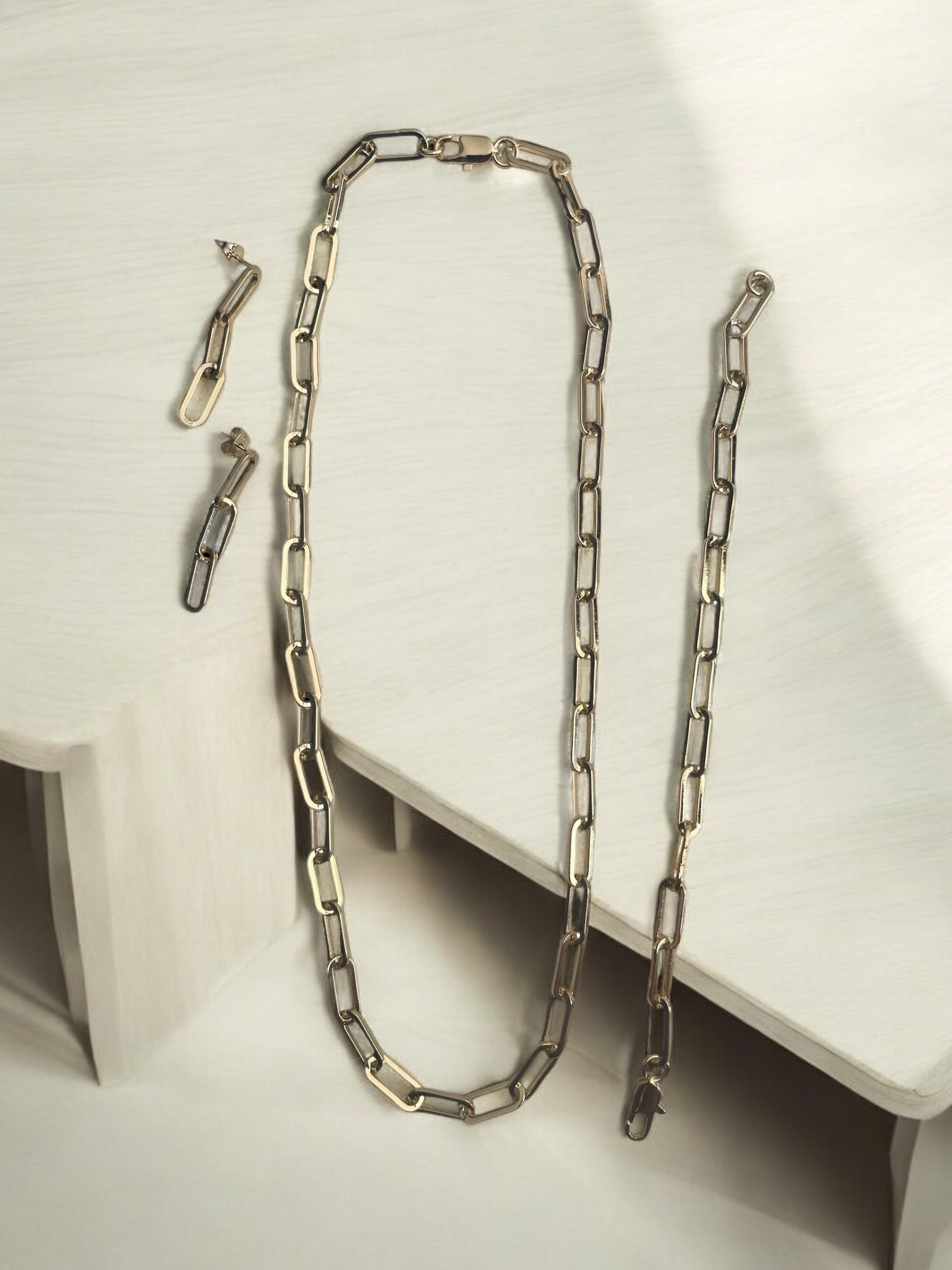Paper clip style necklace, bracelet, and earrings set