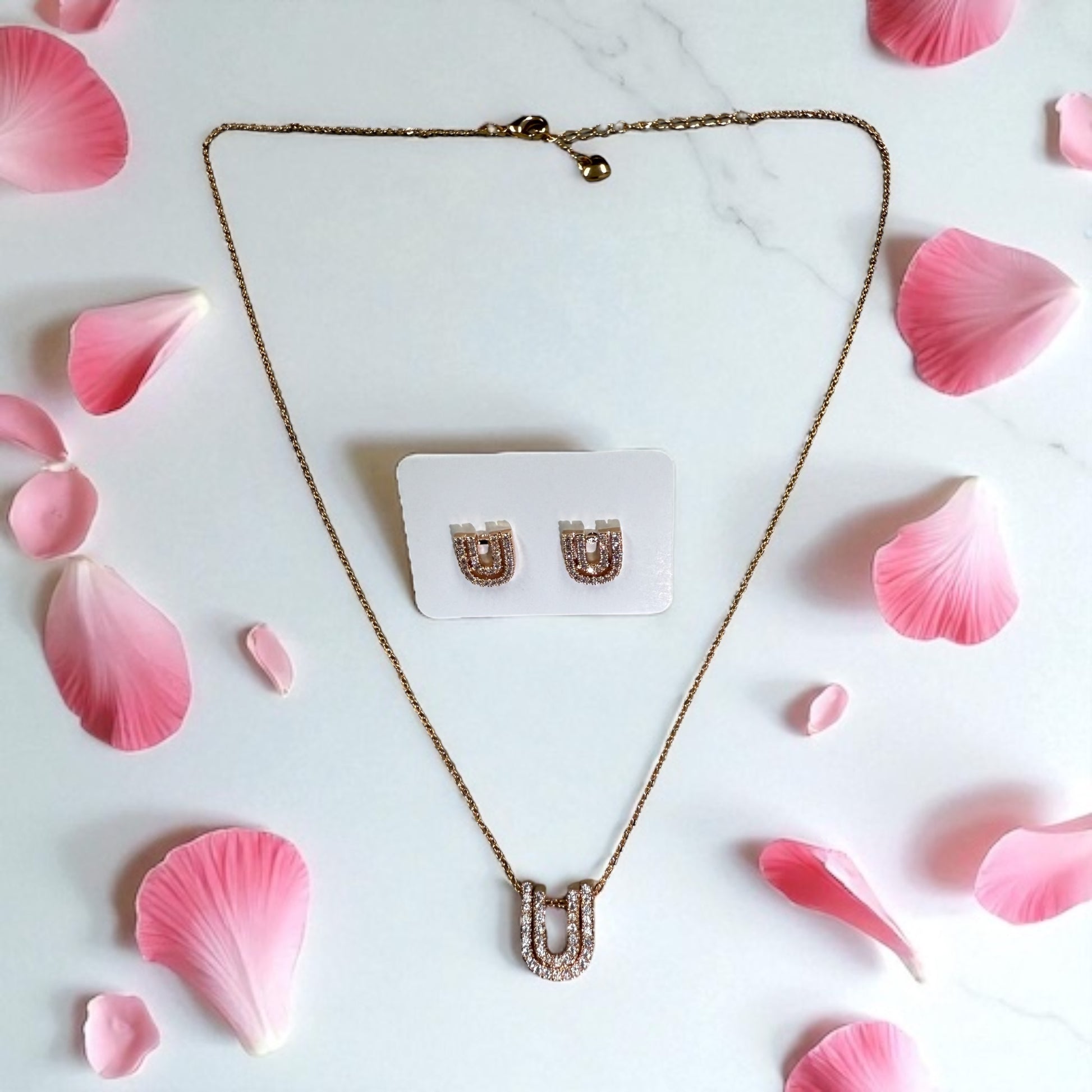 Size of necklace is 17 inches pendant is 1/2 inch x 1/2 inch earrings are 9.1mm x 8.6 mm